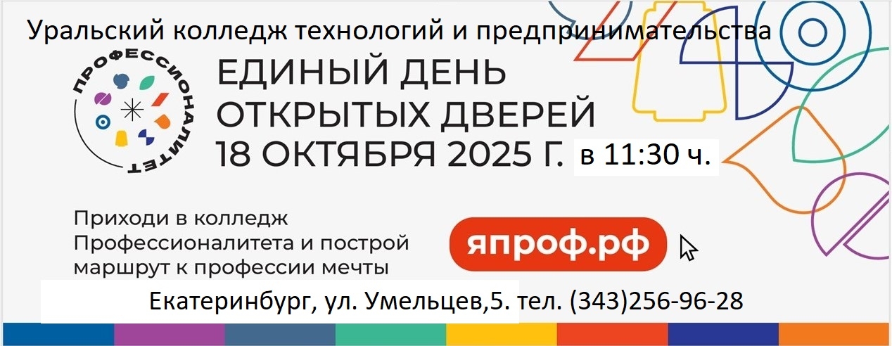 | 3 | Профориентационное тестирование с участием социального партнера «Центра трудовых ресурсов и социальнотрудовых отношений» | В течение всего мероприятия 11:00 – 14:30 | Лаборатория строительных материалов | Социальным партнером колледжа ГАУ СО «Областной центр развития трудовых ресурсов и социально-трудовых отношений», в программе Единого Дня открытых дверей будет проводиться профориентационное компьютерное тестирование для школьников в профориентационной системе «Выпускник» с рассмотрением профессиограммы и консультацией профориентолога. |